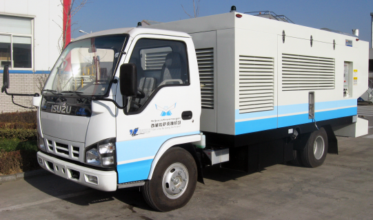 该类设备主要是通过输出低压、大流量压缩空气直接启动飞机发动机,也可给飞机进行辅助供气,用于飞机检查或空调。该设备由汽车底盘、压缩机机组、罩壳总成、供气总成和电气系统组成。